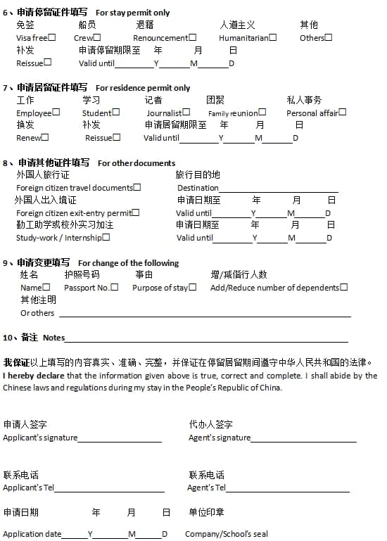 Annex: Visa/Stay Permit/Residence Permit Application Form